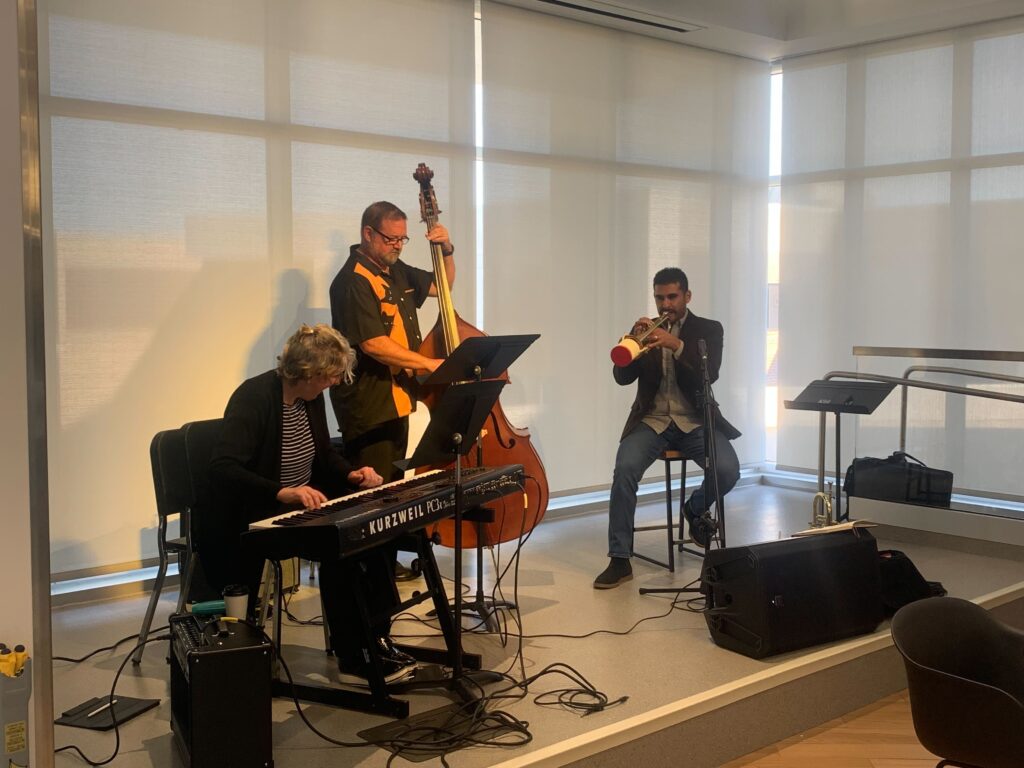 According to Andrews, it was the group’s first time playing together as a group. She said she has jammed with Navarrete before, and she plays for the Kirkwood Choir led by Kiser, but they had never gotten together to play as a trio before this event.