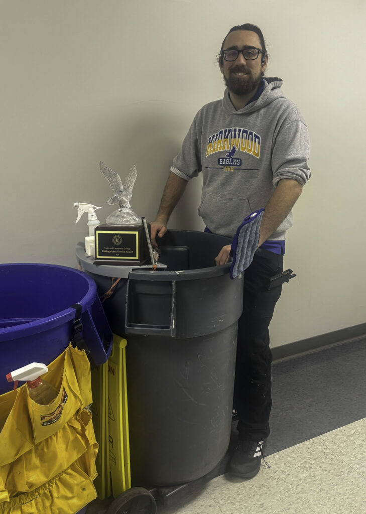 The Honorary Student Award is presented to a Kirkwood Community College employee selected by students who believe the recipient goes above and beyond normal job responsibilities to provide meaningful support. This year, Austin Hutchcroft, custodian, received the award.